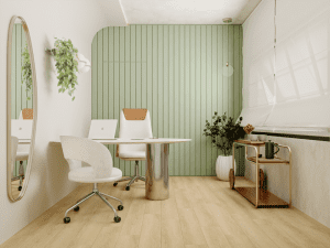 A conexão com a natureza é uma tendência forte no design de interiores, e o piso vinílico SPC oferece opções maravilhosas para trazer essa sensação para dentro de casa. Cores inspiradas na natureza, como verdes, marrons e azuis, criam ambientes calmos e acolhedores, podendo ser combinadas com elementos naturais como plantas e fibras.